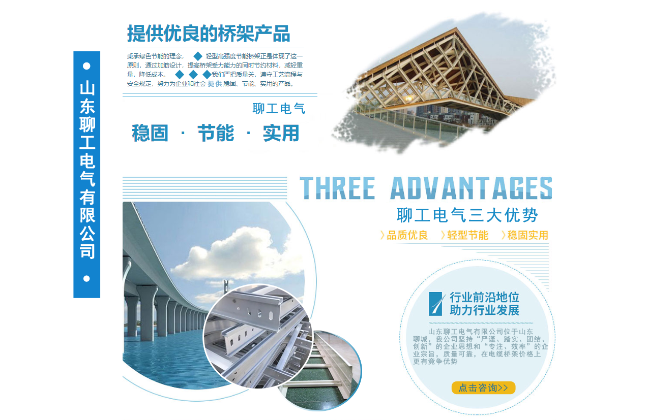山東聊工電氣有限公司位于山東聊城,是一家銷售各類橋架的公司,公司主營鍍鋅防火噴塑橋架,鍍鋅防火電纜橋架 ,不銹鋼電纜橋架,熱浸鋅電纜橋架,鋁合金電纜橋架,熱鍍鋅電纜橋架,梯式電纜橋架等我公司堅持“嚴(yán)謹(jǐn)、踏實、團(tuán)結(jié)、創(chuàng)新”的企業(yè)思想和“專注、效率”的企業(yè)宗旨,質(zhì)量可靠,在電纜橋架價格上更有競爭優(yōu)勢。公司追求品質(zhì),配有研發(fā)人員,進(jìn)行產(chǎn)品的改革和創(chuàng)新,服務(wù)先進(jìn)走出了一條富有企業(yè)特色的可持續(xù)化發(fā)展之路! 我公司鄭重向你承諾:保證最好的質(zhì)量,以低的價格,完善的售后服務(wù),來答謝新老客戶??商崆半娫捖?lián)系。...